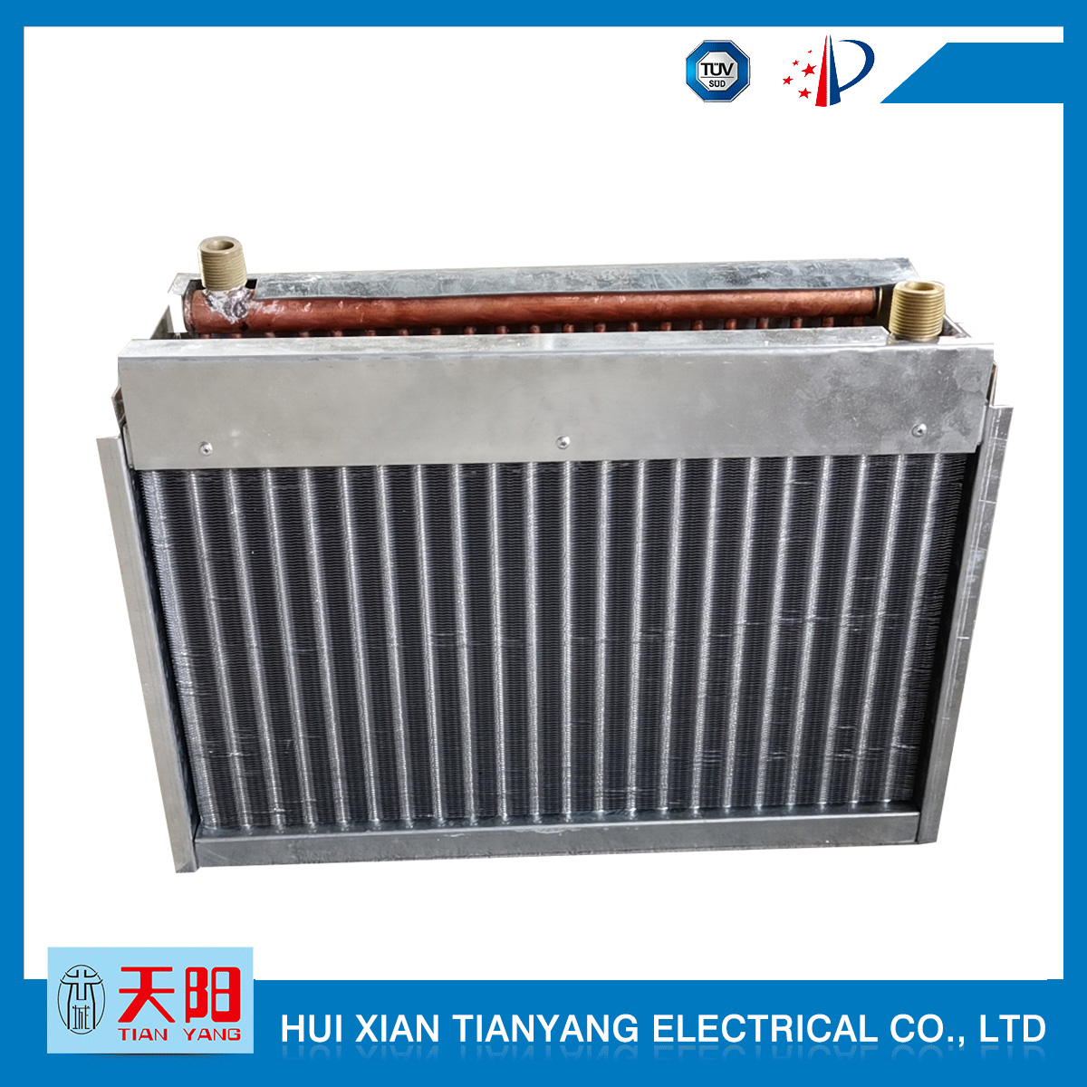 輝縣天陽電器有限責任公司位于肥沃的中原河南省輝縣市學院路中段工業集聚區興業園3號廠房,以制冷設備用冷凝器,蒸發器,熱交換器為主。主要材料為銅管鋁翅片,銅管銅翅片,鋁管鋁翅片。廣泛應用于冰箱冰柜,制冷設備,暖通設備,空調,自動售貨機,冷干機,超市立風柜,冷藏車,烘干機等產品領域。  公司自1998年成立以來,始終堅持:“科技造就產業、質量成就信譽、誠信鑄就輝煌”的質量方針,從產品拓展上堅持“人無我有,人有我優,人優我特的”經營理念,25年來,從1998年開始供應河南冰熊集團下屬的冷柜廠,制冰機廠各種冷凝器;2003年之后,原冰熊集團的精英志士開始在全國各地發展,所到之處依托我公司供貨,以致于多家目前已具行業中佼佼者的公司,從而建立了如凱雪公司,兆邦公司、凌云公司、海寶公司、正雪公司、上海忠云、山東德萊維等幾十余家公司在草創時期的啟蒙供貨商,友好共贏長達十余年,成為我國制冷行業的供應商。以致在2015年初雙匯集團面向社會的招標書中指名要我公司冷凝器、蒸發器指定產品供應商